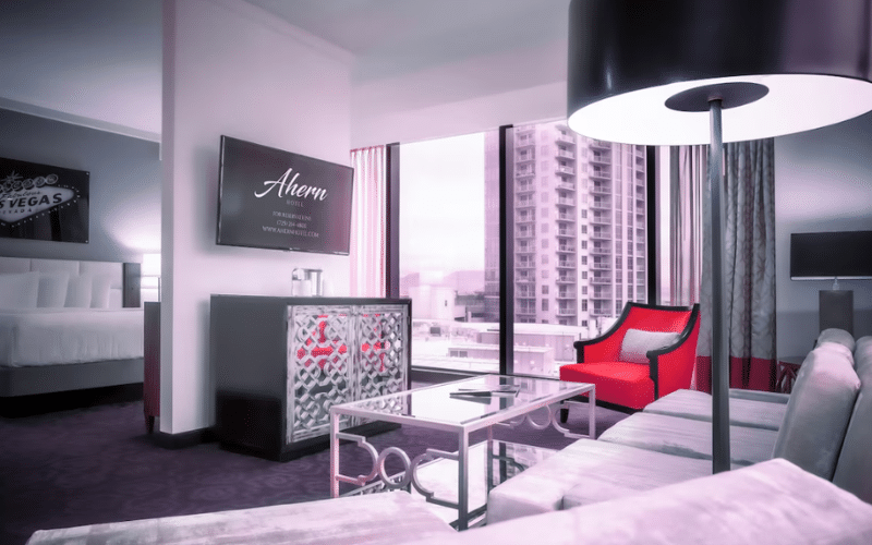 Whether you’re traveling for business or pleasure, Ahern Hotel features luxurious amenities designed for your convenience. Free parking with easy access to the hotel is a nice feature that’s rare in Las Vegas. Take a dip in the small but gorgeous guest swimming pool, or work out in the hotel’s fitness center.