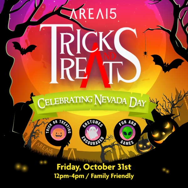 For those with kids who want to enjoy AREA15 for Halloween, there will be a special daytime event that is free to attend! Tricks and Treats will give kids a chance to enjoy trick or treating around the venue and enjoy the decorations as well as take part in numerous activities throughout the day.