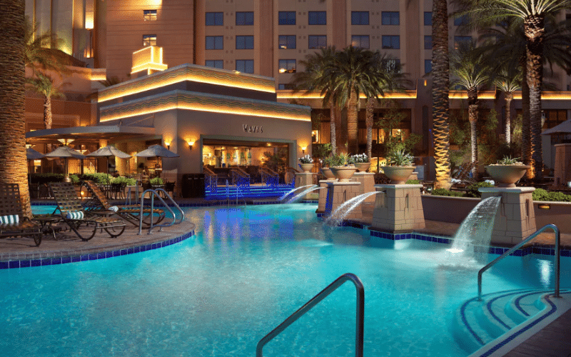 This gorgeous 4 star property in Las Vegas is part of the Hilton family of resorts. With a highly convenient location situated on the North end of the Vegas Strip, business travelers won’t be far from the Convention Center while leisure travelers will be halfway between the Strip and Downtown Vegas. Families love this hotel because of its quiet oasis vibe, and its non-smoking and non-gaming policies.