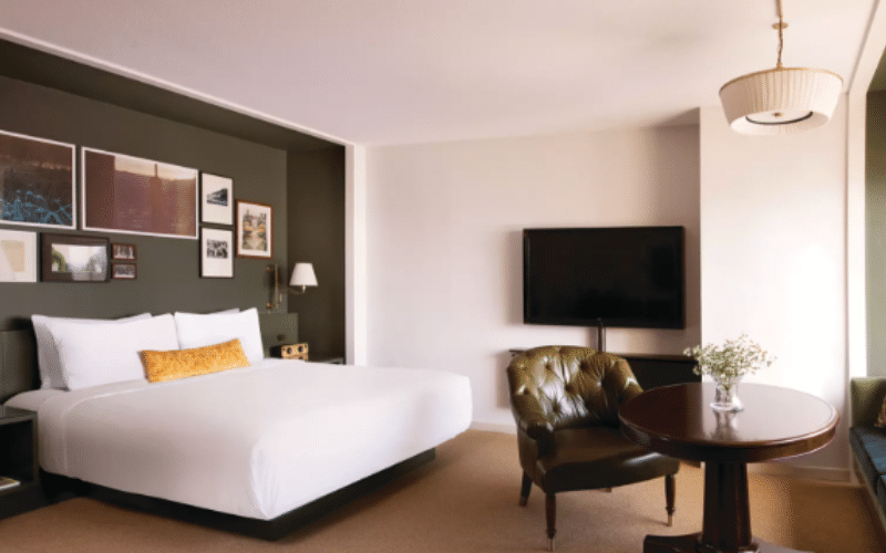 The upscale Luxury King room has a modern, streamlined design and high-end amenities that make relaxation a breeze. Take a warm bath in your deep soaking bathtub, get into your plush bathrobe, and watch a movie on your 65” Ultra High-Definition TV.