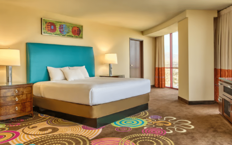 Rio Las Vegas is located about a ten-minute drive west of the Vegas Strip, so it makes a relaxing home base to return to after a long day of exploring on the Strip. It also boasts budget-friendly rooms, as well as one of the best views of the Las Vegas Strip (from their Strip View suites).