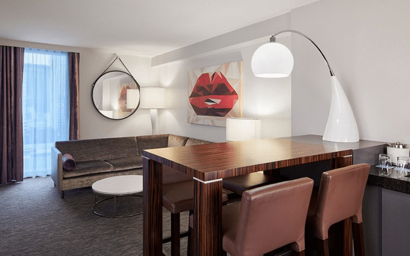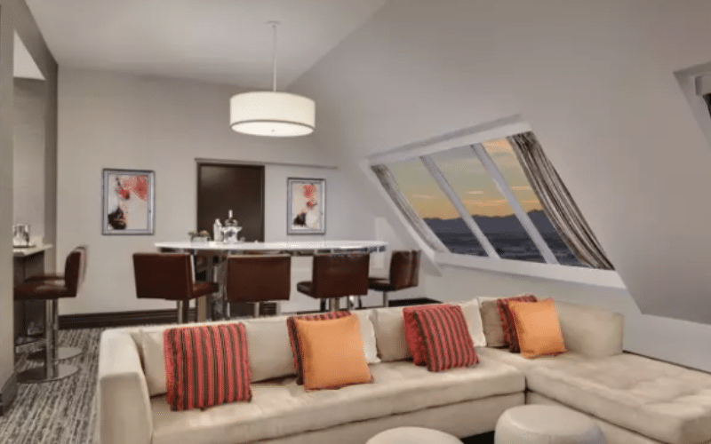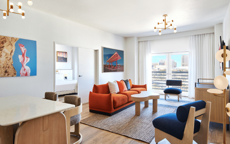 Note: the suites in this top 10 list are one-bedroom suites, and all of them have one king bed in the bedroom. If you’re traveling with a group and need more sleeping accommodations, consider booking a two-bedroom suite or an additional connecting room.